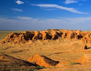 "White Stupa" is the meaning of Tsagaan Suvarga. It is among the Gobi's most well-known attractions. The bizarre natural phenomenon known as Tsagaan Suvarga is made up of enormous, colorful mud cliffs that resemble stupas, which are mound-like buildings that are home to relics. There is an opportunity to snap breathtaking pictures while hiking through the cliffs. Ger camp lodging; breakfast, lunch, and dinner