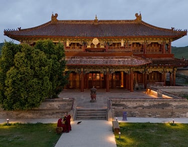 We will go through Erdenet, a central town in Bulgan province and the site of a copper mine, on our way to Amarbayasgalant monastery. The second-largest and most beautiful monastery in terms of architectural is Amarbaysgalant. Between 1727 and 1736, it was constructed in the Chinese and Mongolian styles. Huge Buddha statues erected atop the mountains are part of the monastery's afternoon tour. Ger camp lodging; breakfast, lunch, and dinner