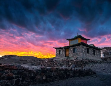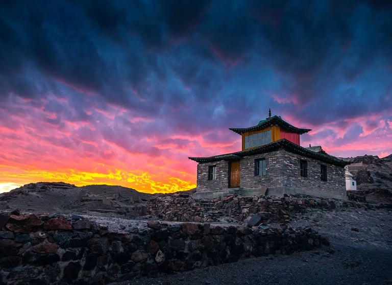Travel 80 kilometers across the Ongi steppes after passing through slate mountains to reach Ongi Monastery, one of Mongolia's seven largest monasteries. On the banks of the Ongi River, encircled by the Gobi mountains, were two distinct monasteries with over thirty temples; however, the temples were demolished during the 1930s socialist purge. The monastic ruins now occupy a vast area. Explore the monastery remains, go to a new, active temple, a ger museum, and ascend a nearby mountain for sweeping views of the surroundings. Ger camp lodging; breakfast, lunch, and dinner