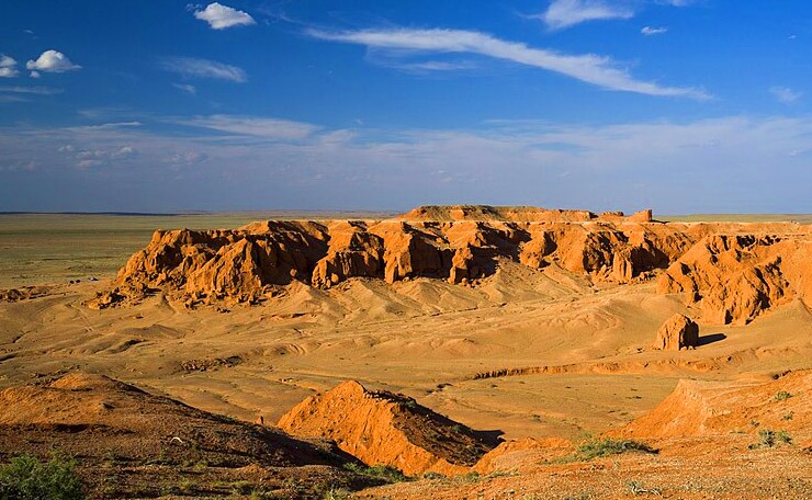 We will continue our journey to the Flaming Cliffs, where American explorer Roy Chapman Andrews discovered dinosaur remains, including the world's first dinosaur eggs. We will have fun visiting the "Bayanzag" Gobi tree grove and explore the cliffs in hopes of discovering dinosaur bones. This translates as "rich in saxaul trees." Only in the Gobi of Central Asia does this tree flourish. Ger camp lodging; breakfast, lunch, and dinner