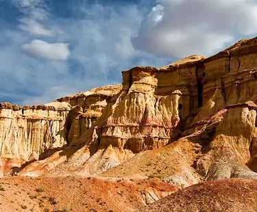 After breakfast, we drive to Tsagaan Suvarga (White Stupa) in Ulziit soum, Dundgobi province. These stunning cliffs were formed from ancient sediment layers dating back 10 million years. Their colorful bands and dramatic gorges create a prehistoric, otherworldly landscape—perfect for exploring and photography.