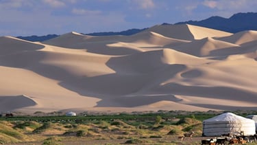 After breakfast, we drive about 120 km to the Khongor Sand Dunes, one of Mongolia’s largest and most spectacular dunes, often called the Singing Dunes. Stretching over 180 km and surrounded by mountains, Khongor offers breathtaking desert scenery. Climbing the dunes takes around 40–60 minutes and can be challenging, but the panoramic views from the top are unforgettable. We will also enjoy a camel ride, one of the best experiences in this area. If weather permits, we may spend the night in a tent near the dunes.
