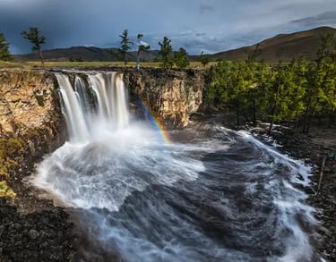 The biggest waterfall in central Mongolia, Ulaantsutgalan, cascades 24 meters down a lava cliff. In the next days, we will witness more yaks than sheep, goats, and horses. The journey follows valleys covered with basalt that span a few rivers and streams. Discover the stunning region and lava cliffs when you get in Ulaantsutgalan in the late afternoon. If you're a good swimmer, you might want to try swimming close to the waterfall. We're going to camp beside the waterfall for the night. Meals: breakfast, lunch, and dinner; lodging: camp