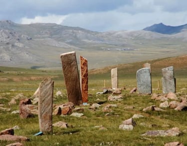 Along the way, visit ancient deer stones—some of Mongolia’s oldest monuments dating back to the Bronze Age, carved with images of deer, the sun, moon, and ritual objects. Continue through mountain valleys on rough tracks and overnight at a ger camp near Shine Ider.