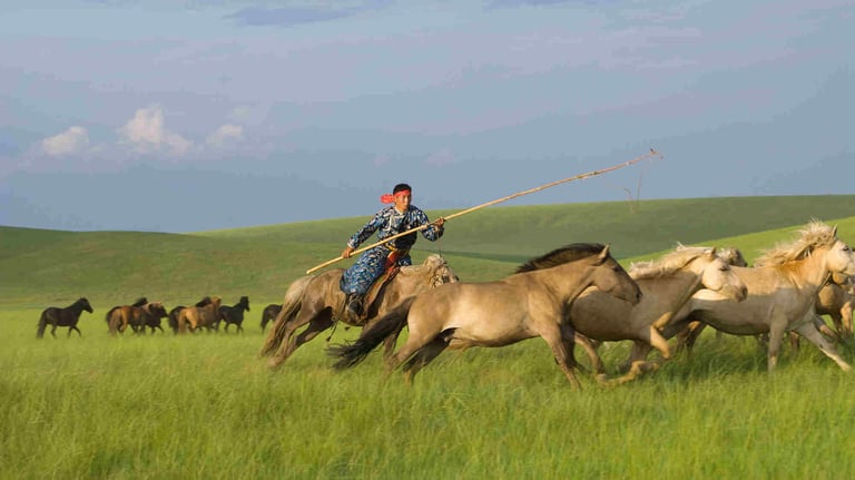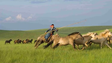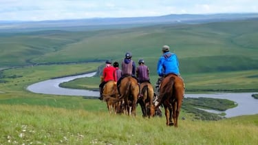 This horseback adventure offers an authentic experience of Mongolia’s nomadic culture, riding the same resilient horses that powered Genghis Khaan’s 13th-century empire. The journey leads you through the hilly steppes of Central Mongolia and into the remote Naiman Nuur—Eight Lakes—set 2,400 meters high in the Khangai Mountains. Here, you’ll ride or hike between the lakes of Shireet, Mukhar, Khaliut, Bugat, Khaya, Duruu, Khuis, and Onon, surrounded by untouched forests and mountains.